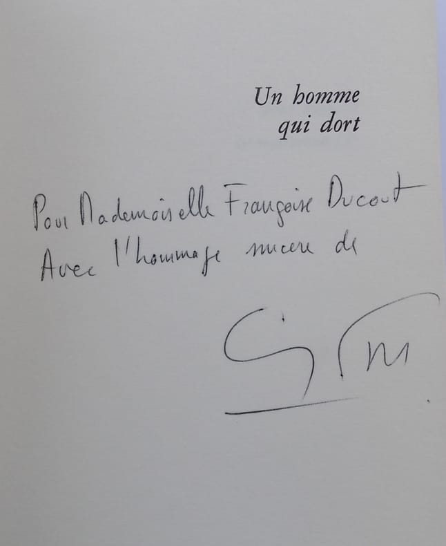 Paris, Denoël, 1967. In-8 de 163 pp., (1) f., broché, chemise et étui Devauchelle. 208 x 125 mm EDITION ORIGINALE. L’un des 15 exemplaires appartenant au tirage de tête sur vélin pur fil Lafuma Navarre (N°2). Le troisième roman de Perec renverse le schéma habituel de l’énonciation : le narrateur s’adresse au personnage principal en le tutoyant, affirmant ainsi ce roman comme une autofiction. Cette utilisation du ‘tu’ est analysée par Pérec : « C’est une forme qui mélange le lecteur, le personnage et l’auteur. Ce ‘tu’ est en même temps un ‘je’ ». « Tu as vingt-cinq ans et vingt-neuf dents, trois chemises et huit chaussettes, quelques livres que tu ne lis plus, quelques disques que tu n'écoutes plus. Tu n'as pas envie de te souvenir d'autre chose, ni de ta famille, ni de tes études, ni de tes amours, ni de tes amis, ni de tes vacances, ni de tes projets. Tu as voyagé et tu n'as rien rapporté de tes voyages. Tu es assis et tu ne veux qu'attendre, attendre seulement jusqu'à ce qu'il n'y ait plus rien à attendre : que vienne la nuit, que sonnent les heures, que les jours s'en aillent, que les souvenirs s'estompent. » Le roman est écrit à la deuxième personne du singulier, à l’exception de quelques lignes qui reprennent le Bartleby de Herman Melville, figure emblématique du détachement, et dont on retrouvera de nombreux échos dans l’œuvre ultérieure de Perec. (Dictionnaire des œuvres 3434) Un homme qui dort s’apparente à une litanie par laquelle se formule – et se produit – l’expérience d’une triple dissolution : de l’espace, du temps et du corps ; disparition du sujet, donc, comme jouissance ou extase du vide. (Frédéric Yvan). Il s’agit de la première émergence évidente, chez Perec, de cette obsession du manque, de la disparition. « C’est l’histoire de quelqu’un qui se déprend complètement, qui tombe dans l’indifférence et qui ensuite est fasciné par cette indifférence » (Pérec). L’œuvre a été adaptée au cinéma en 1974 et a remporté le prix Jean-Vigo. BEL EXEMPLAIRE, L’UN DES 15 PREMIERS, CONSERVE BROCHE, TEL QUE PARU.