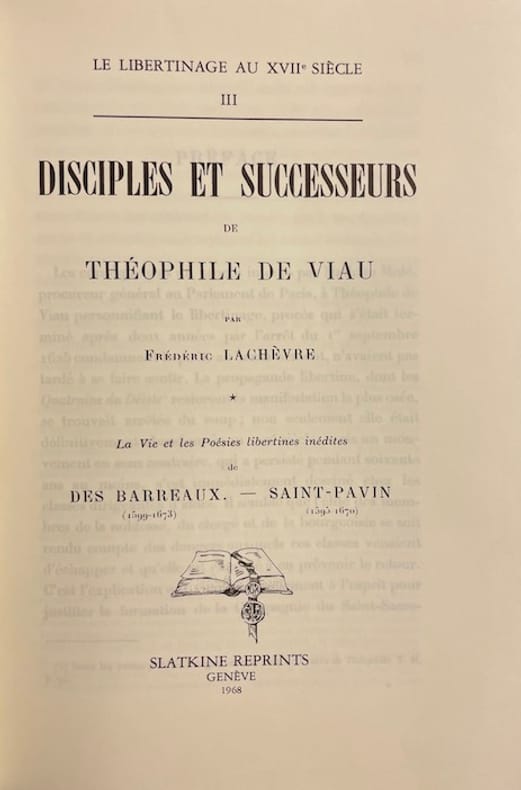 Genève, Slatkine Reprints (Le libertinage au XVIIe siècle III), 1968. In-8°, XIV-541p. Broché.