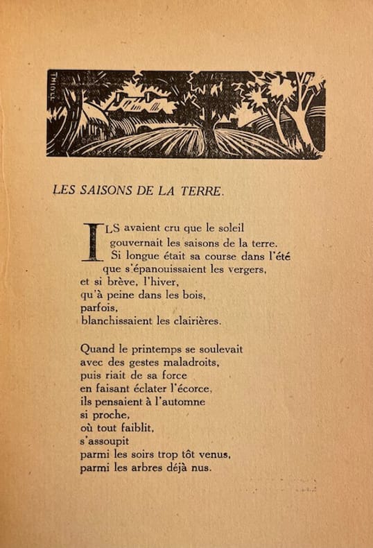 Edition originale fort rare du premier ouvrage de l'auteur. Bandeau et lettrines gravés sur bois. Bon exemplaire.