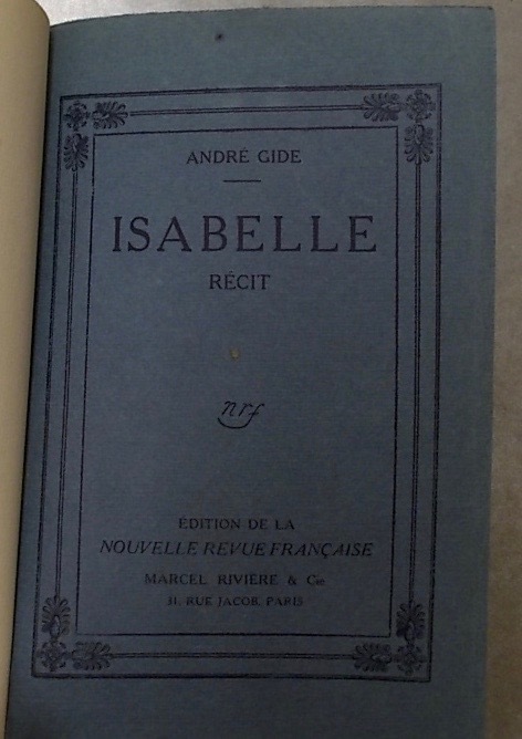 Paris, Nouvelle Revue Française, 1911. In-12, 192p. Reliure demi-veau bleu, dos lisse, couverture bleue et dos conservés.