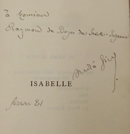 Un des 500 exemplaires sur vergé d'Arches filigrané. Exemplaire enrichi d'un envoi autographe signé de Gide (daté de février 21) en page de faux-titre. Très bel exemplaire.