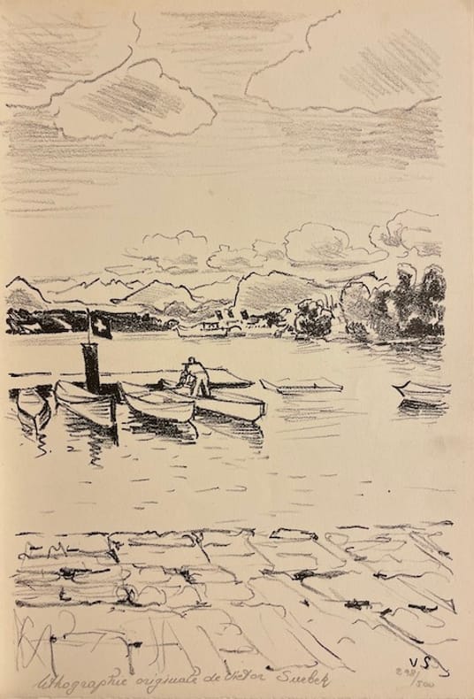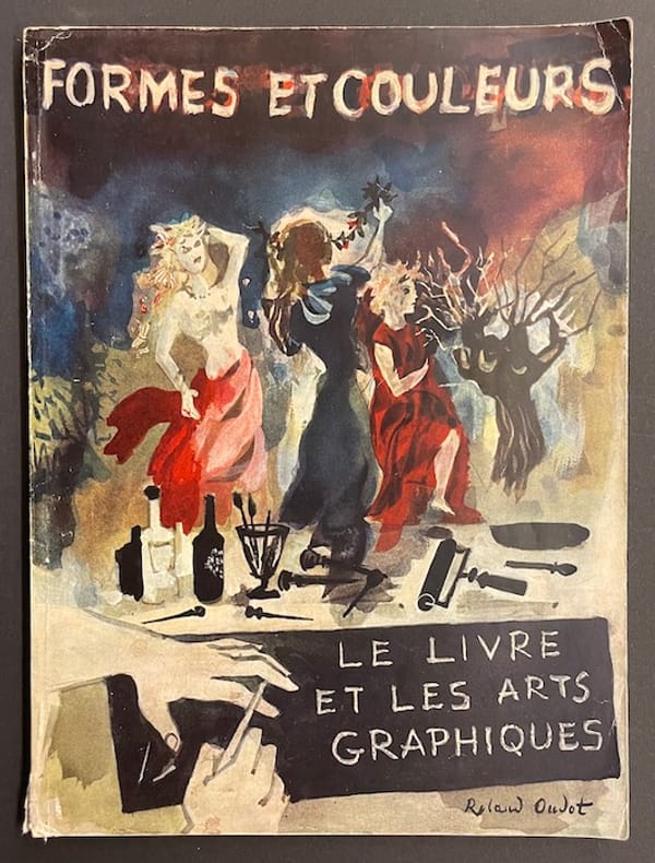 Lausanne Revue Formes et Couleurs 1948 1 vol. broché in-4, broché, couverture illustrée par Roland Oudot, non paginé, nombreuses reproductions et une lithographie hors-texte d'Albert Chavaz, justifiée 471/500 et signée par l'artiste. Etudes de Jacques de Lacretelle, Claude Roger-Marx, etc. Petit manque à la coiffe inférieure, sinon bon état général.