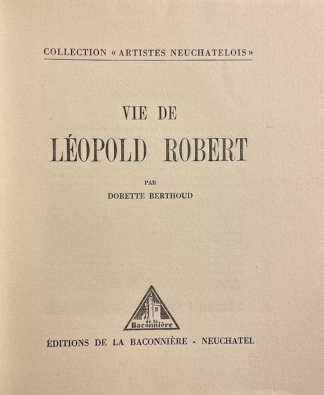 Nouvelle Bibliothèque, Neuchatel, 1961. Fort in-12, reliure toile éditeur, dos lisse avec filets dorés, titre doré sur le plat supérieur et le dos, 302 pp. Vie du peintre Léopod Robert (chap. I-XX) - Mémoires d'Edouard Odier (fragment).