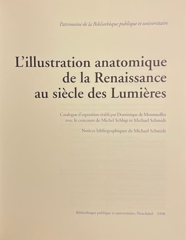 L'illustration anatomique de la Renaissance au siècle des Lumières. (Neuchâtel: Bibliothèque publique et universitaire de Neuchâtel, 1998). [M.C.: bibliographie, médecine, anatomie]