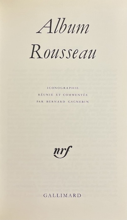 Coll. "Pléiade - Album" n° 15, Paris, éd. Gallimard, 27 février 1976, EDITION ORIGINALE, in-12, pleine basane havane éd., rhodoïd éd., 272 pp., ill. par 404 reproductions de documents anciens en noir, iconographie réunie et commentée par Bernard Gagnebin, Toute la vie de Rousseau dans cette prestigieuse collection. Bien complet du rhodoïd. Très bon état