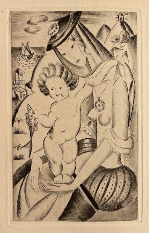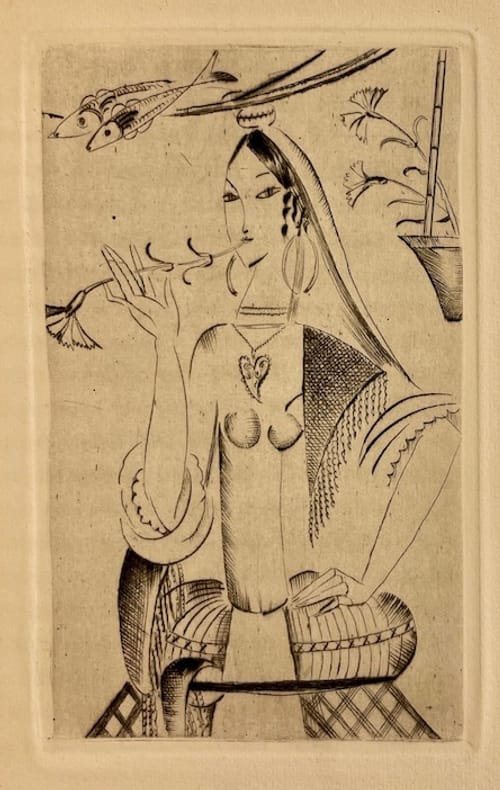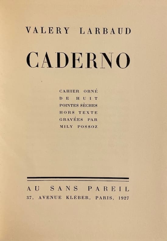 Au Sans Pareil Paris 1927. Cahier orné de huit pointes sèches hors texte gravées par Mily POSSOZ. (195mmx144). N°474 sur vélin Montgolfier d'Annonay.Couverture à rabats défraichie. Bon état.