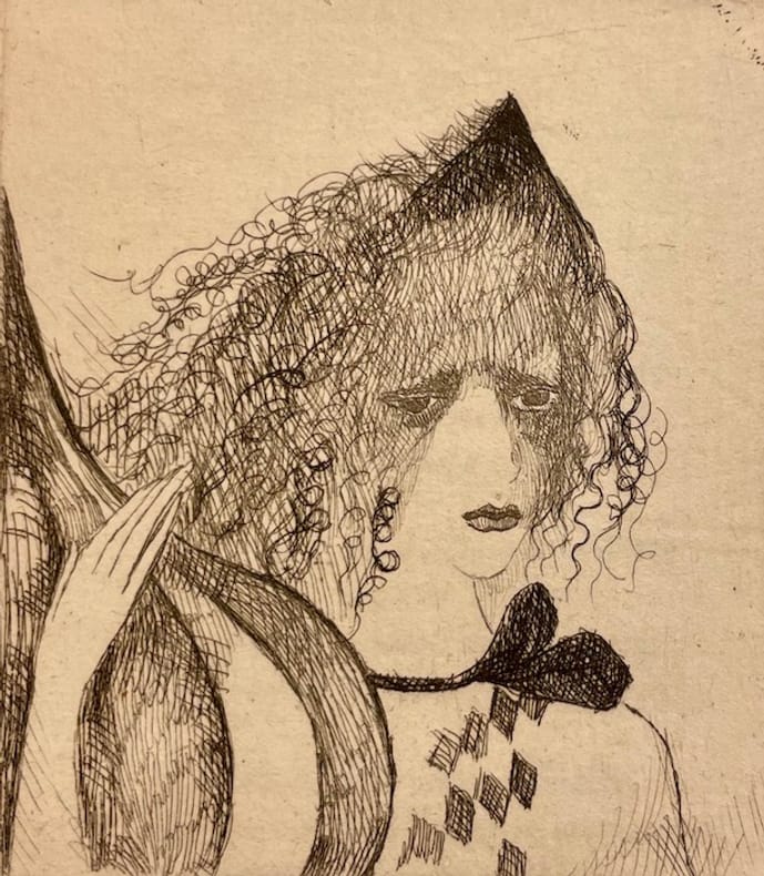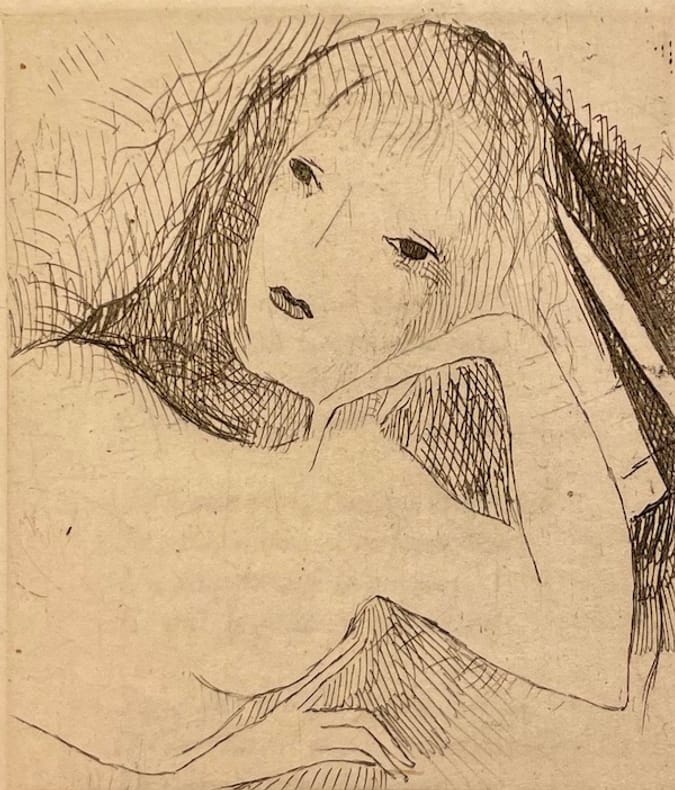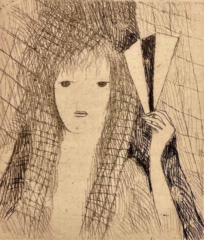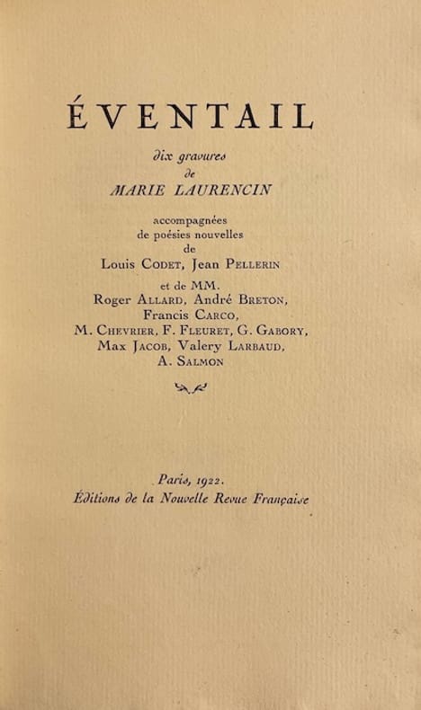 Edition originale tirée à 327 exemplaires numérotés sur Hollande, seul tirage après 8 exemplaires avec suites (celui-ci exemplaire non numéroté mais justifié à la main par Gallimard). Illustré de 10 gravures originales à l'eau-forte de Marie Laurencin. Exemplaire en parfaite condition.