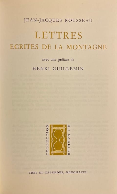 Dernier ouvrage de Rousseau publié de son vivant, les Lettres écrites de la montagne font suite aux Lettres écrites de la campagne rédigées par le partial procureur Jean-Robert Tronchin, soucieux de justifier la condamnation du philosophe. Pour répliquer, Rousseau se renseigne sur l’histoire de la République genevoise, dépassant son cas particulier pour remettre en cause les fondements de l’Etat : “Laissons Genève à sa place, et Rousseau dans sa dépression ; mais la religion, la liberté, la justice ! Voilà, qui que vous soyez, ce qui n’est pas au-dessous de vous.” (avertissement) L’ouvrage fera scandale et sera censuré à Genève comme à Paris. On dénombre pas moins de cinq éditions en 1764.