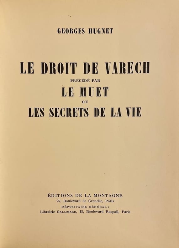 1930, Éditions de la montagne, in-8 broché de 235 pages, Le droit de Varech précédé par Le muet ou les secrets de la vie exemplaire n°472 | Etat : bon état, coiffes abîmés avec petit accrocs, non coupé (Ref.: ref90745)