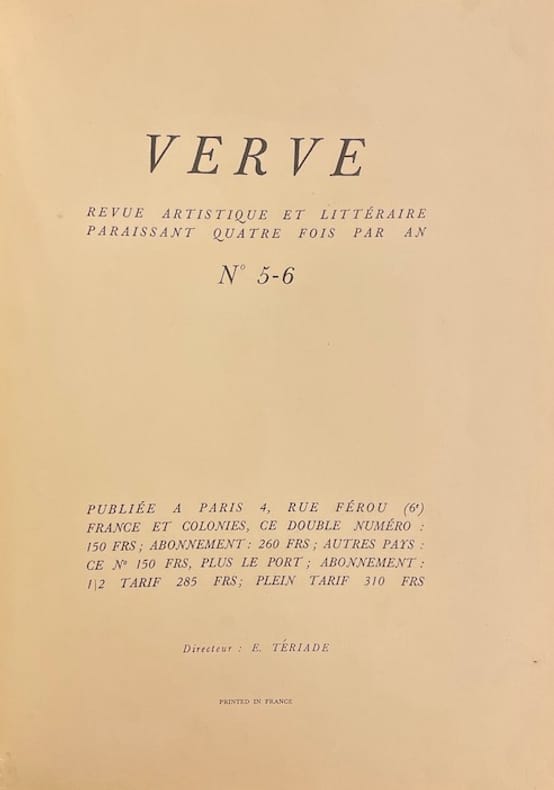 Paris, Verve Volume II, N° 5-6. Juillet-Octobre [1939]. In-folio, non paginé. Broché, couverture illustrée.