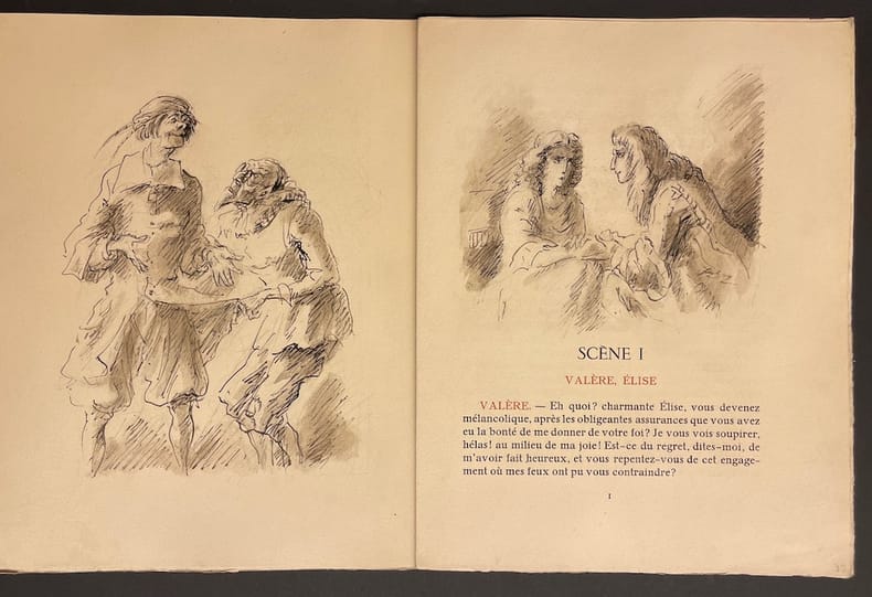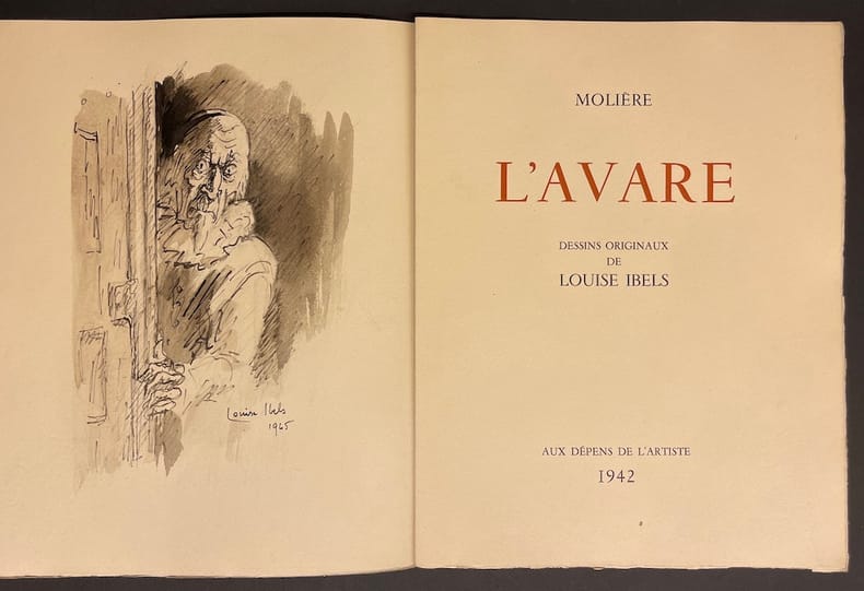 Edition de grand luxe au tirage unique limité à 30 exemplaires numérotés sur vélin teinté. Illustré de 61 dessins originaux de Louise Ibels. Tous les dessins ont été réalisés à la main dans chaque exemplaire par l'artiste rendant ainsi chaque exemplaire unique. Chaque année, les Bibliophiles Franco-Suisses publiaient un ouvrage tirés à environ 120 exemplaires réservés aux membres de l'association. Celui-ci, édité en pleine guerre, ne fut réalisé qu'à 30 exemplaires pour le membres suisses.Exemplaire N° 30 nominatif imprimé pour André Givaudan. En excellente condition.