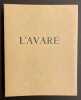 Le 9 septembre 1668, Molière fait représenter L'Avare sur la scène du théâtre du Palais-Royal. Il y aura neuf représentations, dont la première à la Cour le 5 novembre. La pièce est donnée en alternance avec des comédies plus anciennes et après la neuvième représentation elle ne reparaît qu'accompagnée d'une farce, Le Fin Lourdaud. « Que le public ait boudé L'Avare est donc bien certain ; [...] on a donné comme explication que l'emploi de la prose pour une grande comédie en cinq actes a choqué.» C'est une des causes reconnues aujourd'hui où elle elle est devenue au fil des siècles la plus emblématiques de son oeuvre avec Le Bourgeois gentilhomme et Le Malade imaginaire.