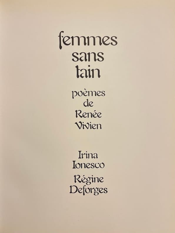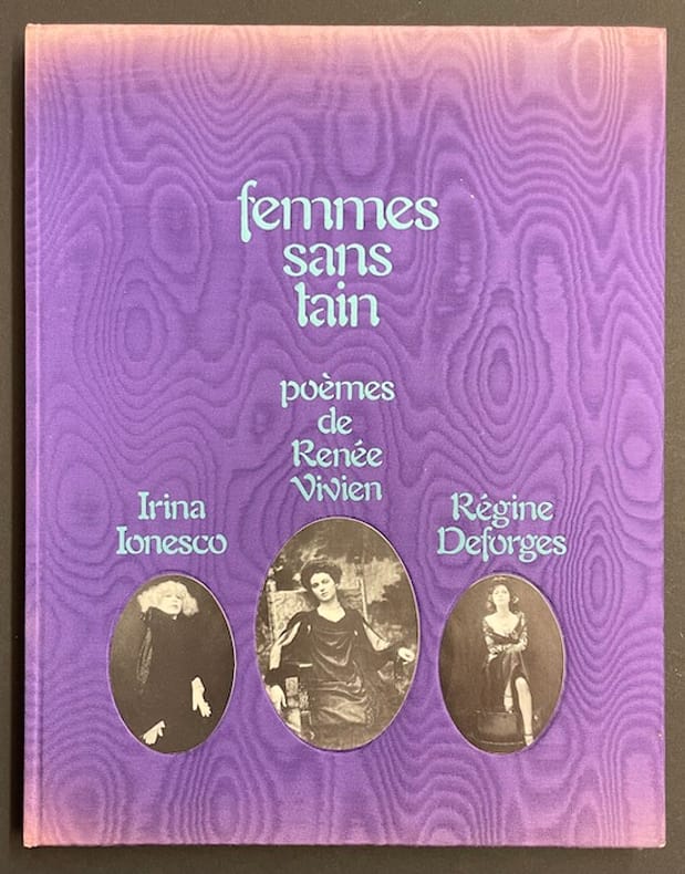 21 photographies hors-texte. Photographies d'Irina Ionesco sur des poèmes de Renée Vivien, préface de Régine Deforges. Légère insolation des bords inférieur et supérieur.