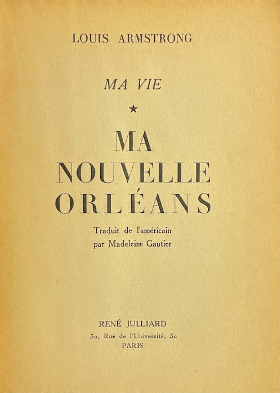 Editions René Julliard 1952. In-8 broché de 236 pages au format 19,5 x 14 cm. Couverture à rabats illustrée de belles photographies de Louis Armstrong et de sa famille. Texte inédit de Hugues Panassié au 1er rabat. Dos carré, légèrement pâli avec petits frottis. Plats et intérieur frais malgré d'infimes frottis aux coins. Premier volume et le seul paru des mémoires de Louis Armstrong. Bel état général. Rare édition originale.