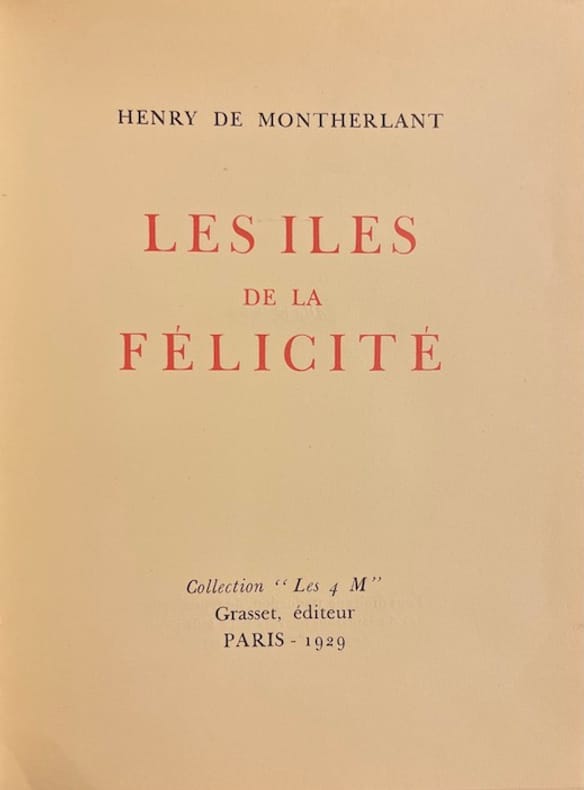 Paris, Grasset (coll. "Les 4 M"), 1929. In-8°, 99p. Broché, couverture illustrée rempliée.