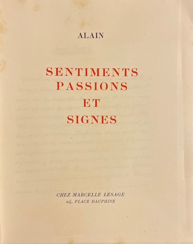 1935 1935. Alain - Sentiments passions et signes / Gallimard 1935