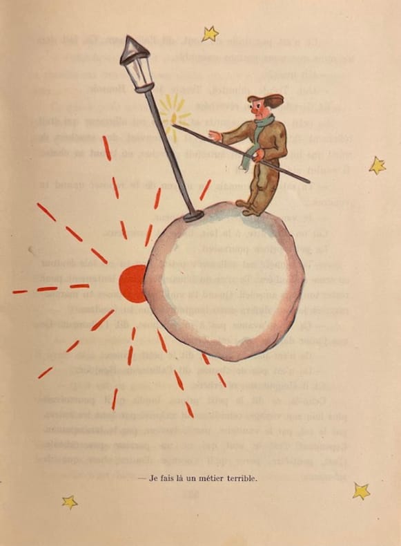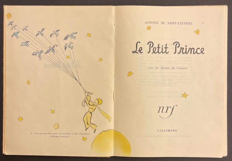 Édition originale française du "Petit Prince" parue dans la foulée à quelques jours de l'édition américaine en troisième tirage, ("Third Printing"), éditée à New York. "J'ai vu un petit bonhomme tout à fait extraordinaire qui me considérait gravement... Mais... qu'est- ce que tu fais là ? ". Telle est la quête initiatique et merveilleuse de ce Petit Prince évoluant au milieu d'une constellation de planètes dont il entreprend la découverte. Les jeunes français ne découvriront Le Petit Prince, publié d'abord à New-York en avril 1943, qu'après la Libération, en avril 1946. Quelques taches, usures et salissures