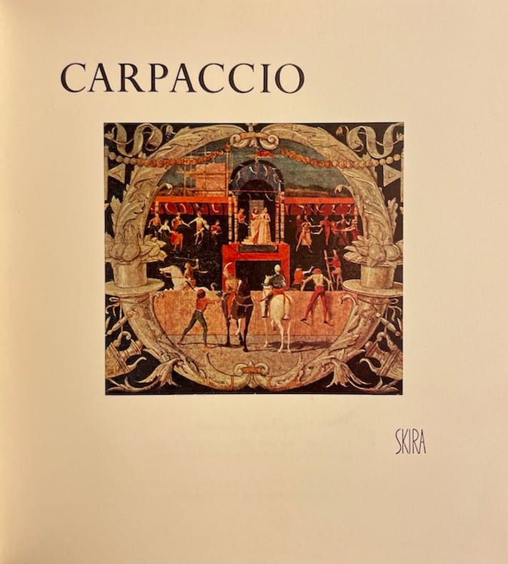 Carpaccio: Leben und Werk Hardcover, blue linen with dust jacket ( slightly soiled ), 335 x 285 mm, 271 pp, illustrations in color, very fine condition
