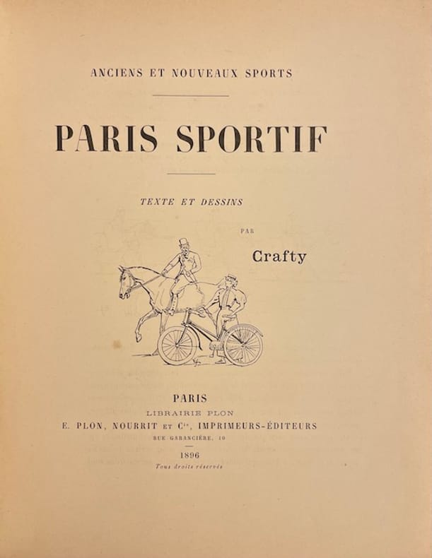 Edition originale. Panorama des sports à la mode à Paris à la fin du XIXe siècle. La marche, la course, la natation, la boxe, la lutte, la danse, le foot-ball, le law-tennis, le tir au pigeon etc... et tous les sports équestres évidemment. Bon exemplaire, non coupé.