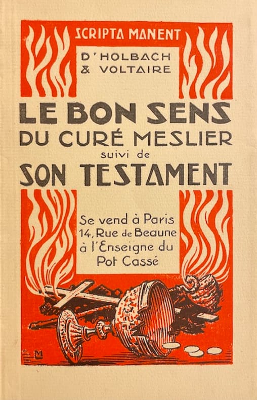 In 8 demi-velin muet, faux-titre,portrait en frontispice,titre,XVIII,252 pages,tranches jaunes. Chez tous les marchands de nouveautés 1834.le curé enseigna le christianisme toute sa vie;il écrivit un testament dans lequel il manifestait son incrédulité."le bon sens"est une sorte de cathéchisme de l'Athéisme.