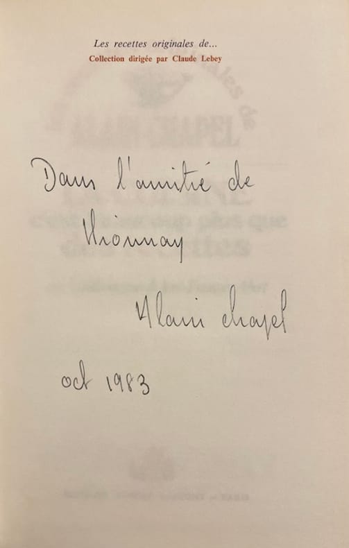 Nouveau tirage, une annöe après l'originale. Avec quelques planches hors texte. Exemplaire enrichi d'un envoi autographe du cuisinier daté de 1983. En excellente condition.