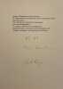 Edition originale tirée à 23 exemplaires numérotés à la main sur vélin à la cuve, signés par l'auteure et par l'artiste à la justification. 18 poèmes de Monique Laederach illustré de 3 lithographies originale, dont une en double page, de Marcel Mathys. Ex-dono non signé de Mathys en page de garde.