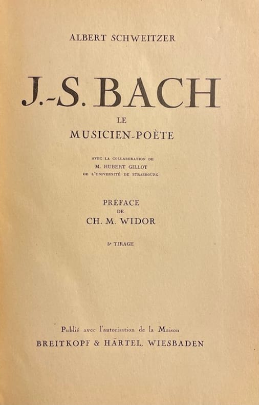 Cinquième tirage. Préface de CH. M. Widor. Avec un portrait de Bach en frontispice. Nom de possesseur en page de titre, sinon exemplaire à l'état de neuf non coupé.