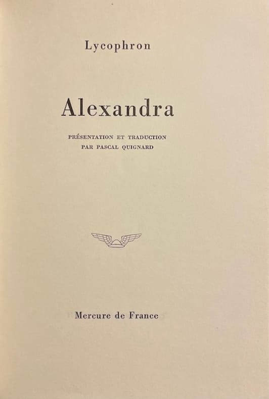 Édition originale de la présentation et de la traduction faite par Pascal Quignard. Ouvrage à l'état de neuf.