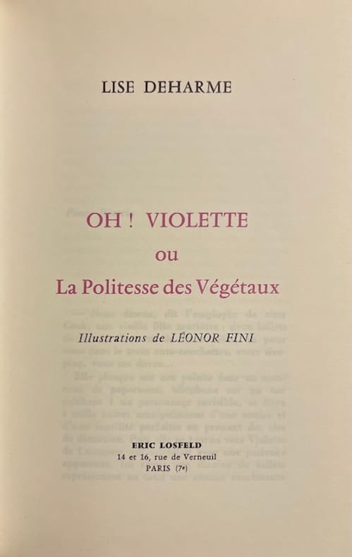 Edition ooriginale illustréde dessins de Léonor Fini. Typographie en 2 couleurs (noir et... violet). En excellente condition.