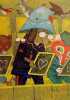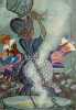 Magnifique planche originale intitulée " Alice in Wonderland - Birds washing ". La planche est composé de 6 dessins à l'encre avec mise en couleurs à la gouache. Elle porte des indications sur les bords. Format 45 x 35,5 cm. Titre en haut de planche. Indication au bas : Disneyland n° 145. Page 17. Dec 1st. Cachet au coin inférieur. Non daté ni signé. Réalisé par un dessinateur européen sous licence des studios Disney. Réalisation à l'encre de chine et en couleurs avec un trait d'une finesse inouï. Rarissime. Etat magnifique.