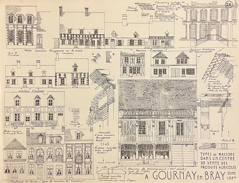 Croquis d'architecture pris en Normandie, Nord, Pas-de-Calais, Champagne, Bourgogne, Orléanais, Touraine. Exemplaire complet en très bon état. Dos toilé.