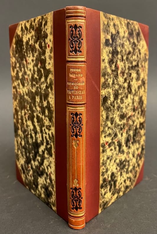 4 petites physiologies reliées en 1 vol. in-16 : Paris, Aubert et Cie, Lavigne sans date (1841), 127-(1) pp. - Paris, Jules Laisné, Aubert et Cie, Lavigne, sans date (1841), 128-(2) pp. - Paris, Aubert et Cie, Lavigne, sans date, (1841), 123-(1) pp. - Paris, Aubert et Lavigne, sans date (1841), 121 (1) pp., rel. d'ép. demi-veau brun, dos lisse orné de fleurons et triple-flets dorés, initiales H. P. dorées, tampon ex libris du propriétaire (Hovine) sur les pages de titres, bon ex.