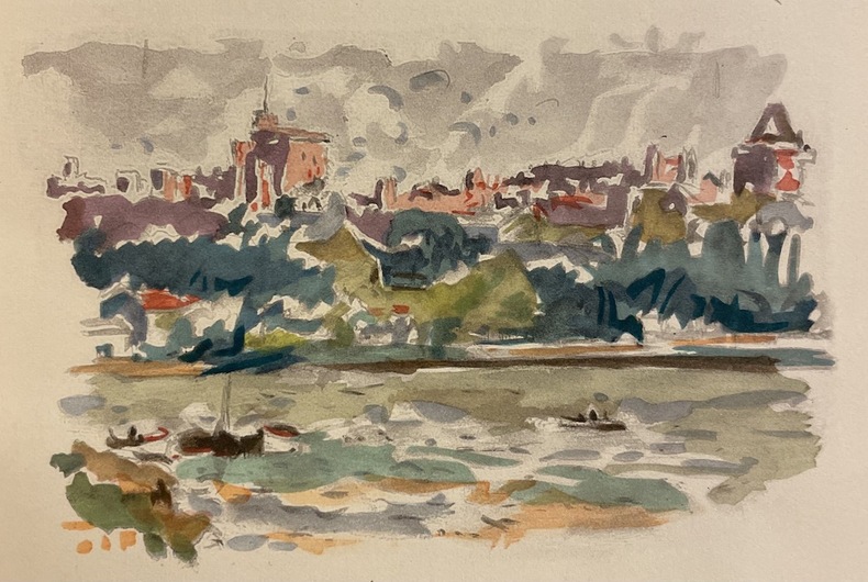 Aquarelles originales de André Fraye. Traduit par Théo Varlet. Tirage limité à 1480 exemplaires, celui-ci numéroté sur vélin teinté pur fil de Rives. Dos recollé proprement.