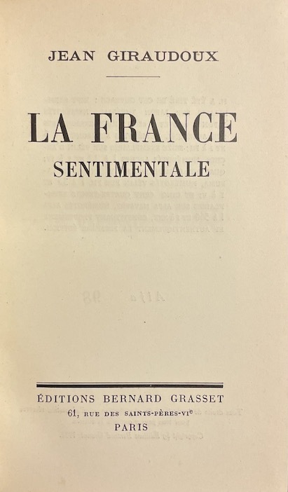 Paris, Editions Bernard Grasset 1932, 185x125mm, 286pages, broché. Très petites déchirures sur le bas du dos, autrement bel exemplaire. Edition originale sur papier vélin pur fil, numérotée n.° 9 / 35.