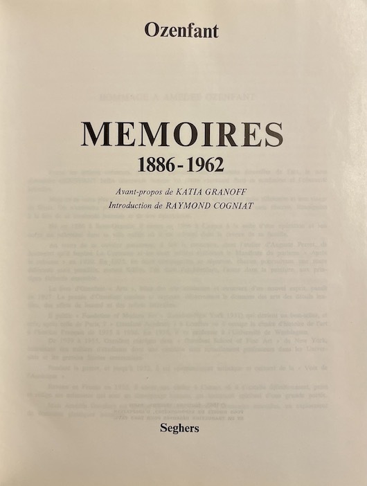 Avant-propos de Katia Granoff. Introduction de Raymond Cogniat. Autobiographie d'un des fondateur du purisme, ami de Le Corbusier. Avec quelques illustrations et reproductions en noir dans le texte. Bel exemplaire.