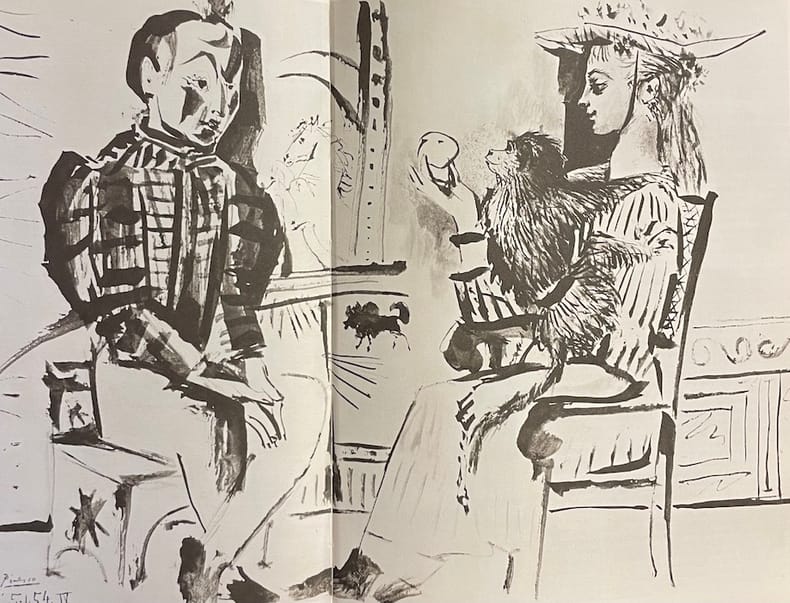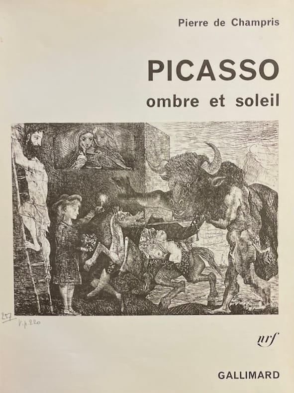 P., NRF Gallimard, 1960. In-4, rel. d'éditeur pleine toile illustrée d'un dessin de Picasso (Minotauromachie), bandeau conservé, sous rhodoïd, 295 pp., 322 reprod. d'oeuvres légendées de Picasso et d'autres artistes, dt qq. unes en couleurs.