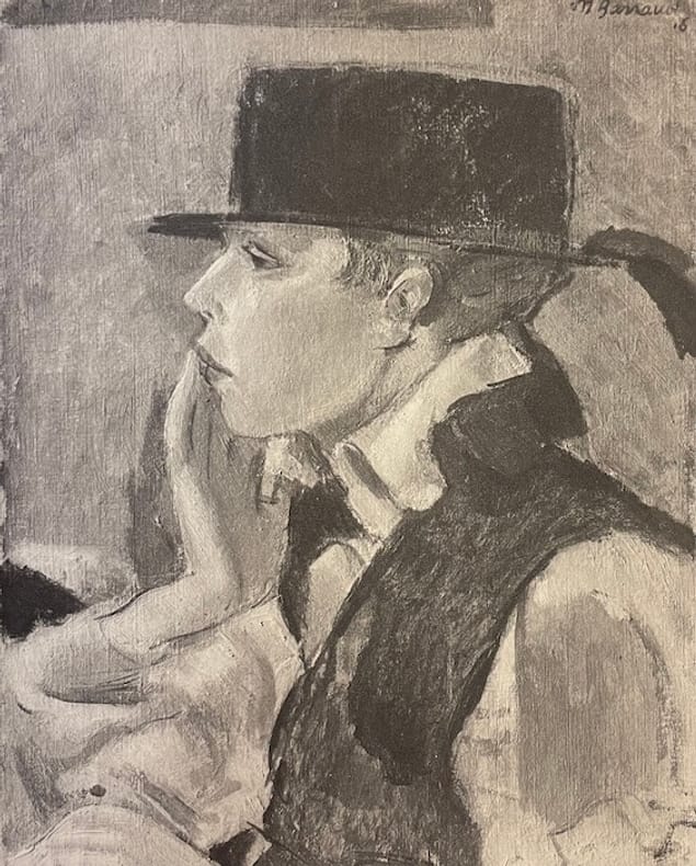 1921 Paris, Ronald Davis et Cie, 1921, édition originale. In-8°,broché, 103 pp + suites. Edition ornée d'un portrait inédit de l'auteur par Maxime Dethomas et de 22 dessins originaux de Maurice Barraud. Avec une ravissante suite en couleur des dessins de Maurice Barraud. 1/270 ex. num. sur Arches. - Chroniques publiées dans la revue du 'Mercure de France' par le jeune écrivain mort à moins de 25 ans. Les dessins de Barraud (1889-1954), peintre, dessinateur et graveur genevois, correspondent à ses premières réalisations, 'des tableaux de moeurs liées à la vie citadine inspirés des oeuvres de Degas et de Toulouse-Lautrec.' Les dessins montrent principalement des femmes, thème de prédilection de 'Barraud' Broché, couverture rempliée.Tous les tirages de ce petit illustré rafraîchissant semblent avoir été justifiés à la main au crayon bleu,N°205