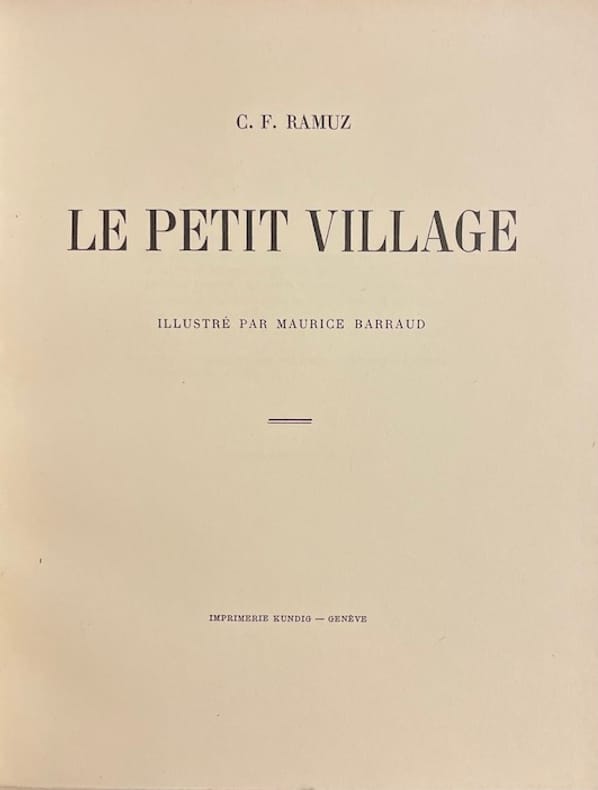 Edition partiellement originale. Un des 25 exemplaires numérotés sur Japon ancien (deuxième papier après 26 Chine, mais avant 30 Hollande et 600 vélin). Illustré de dessins à la plume de Maurice Barraud. Seconde édition du premier livre de l'auteur augmentée de 6 poèmes inédits. De la bibliothèque de Fritz Kappeler qui fit habiller tous ses ouvrages illustrés par Maurice Barraud d'une sobre reliure plein parchemin, mais en demandant à l'artiste de les agrémenter d'un petit dessin original sur le dos. En excellente condition.