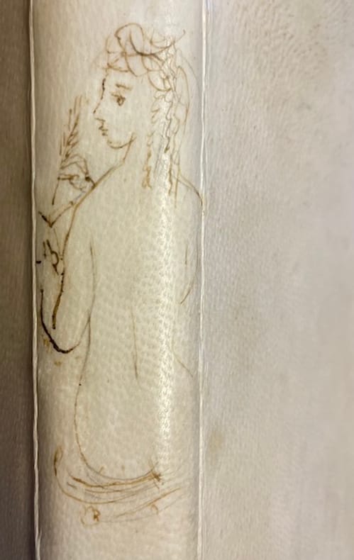 Edition originale. Un des 1400 exemplaires numérotés sur vélin blanc enrichi d'un envoi autographe signé de l'auteur à Fritz Kappeler en page de faux-titre. Fritz Kappeler fit habiller tous ses ouvrages illustrés par Maurice Barraud d'une sobre reliure plein parchemin, mais demanda à l'artiste de les agrémenter d'un petit dessin original sur le dos. En excellente condition.