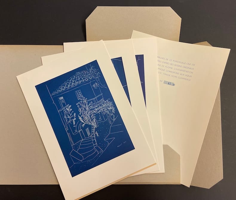 [Neuchâtel, chez l'artiste, 1960]. 21x30cm, 9ff. sous cartable avec signature de l'artiste sur le premier plat, et décor original.