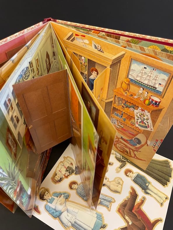 Livre-jeu traduit de l'anglais par Hélène Costes. Une recréation magique d'une maison édouardienne, avec des portes à rabat secrètes à ouvrir et des couvercles à soulever. Un total de 19 figurines et accessoires en papier sont dans la poche à l'arrière pour être utilisés pendant le jeu. Exemplaire en excellent état. Fort rare.