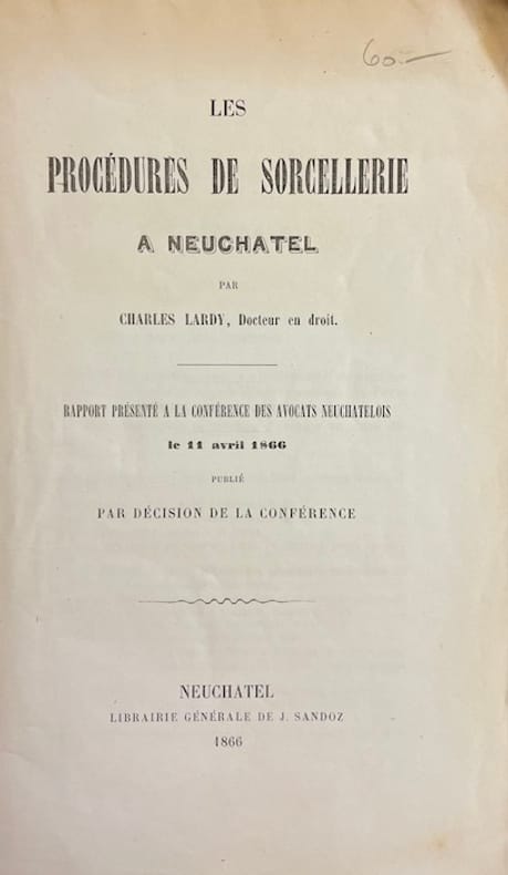 Rapport présenté à la conférence des avocats neuchâtelois le 11 avril 1866, publié par décision de la conférence. Bien complet des 2 feillets dépliants de documents reproduits en facsimilé. Bel exemplaire.