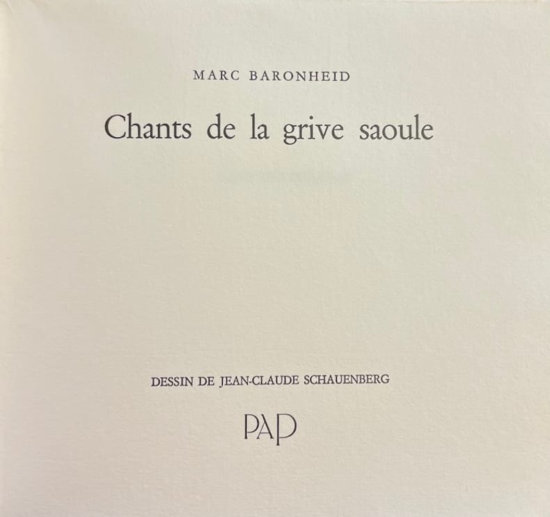 Edition originale. Avec en frontispice un dessin de Jean-Claude Schauenberg. Bel exemplaire, non coupé.