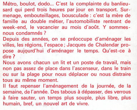 Sommaire : L'aménagement du temps de travail - Eliminer le compartimentage de la vie - Une vue prospective de l'aménagement du temps de travail - Le congé-éducation en URSS - Durée et fonctions principales du congé - Raccourcissement de la semaine de travail : Vers la semaine de quatre jours ? - La semaine de quatre jours soulève de nouveaux problèmes - L'horaire variable : Premiers essais - Principaux résultats des expériences étrangères - Le comité pour l'étude et l'aménagement des horaires de travail et des temps de loisirs dans la région parisienne.. Classification Dewey : 70.49-Presse illustrée, magazines, revues