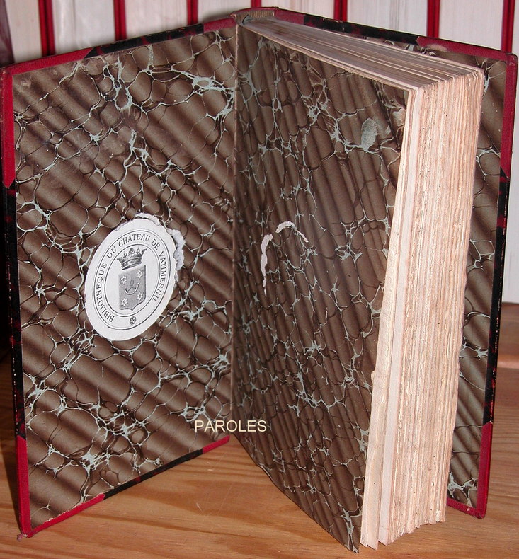 Paris, Imprimerie de Crapelet, 1845 1 volume In-8° (13,5 x 21,2cm) Reliure d'époque demi-chagrin rouge à coins; dos à alternance de 4 nerfs ornés de pointillés dorés et de 4 caissons à doubles filets d'encadrement dorés, auteur et titre dorés, filets et pointillés dorés aux coiffes; mors des plats et coins bordés de doubles filets dorés; papier de couvrure des plats et gardes marbrés; tête dorée. XIIp., 2 feuillets, 304p.; 4 planches hors texte dont 1frontispice. Bon état sauf quelques rousseurs, y compris sur les planches, et en particulier sur les pages en regard.