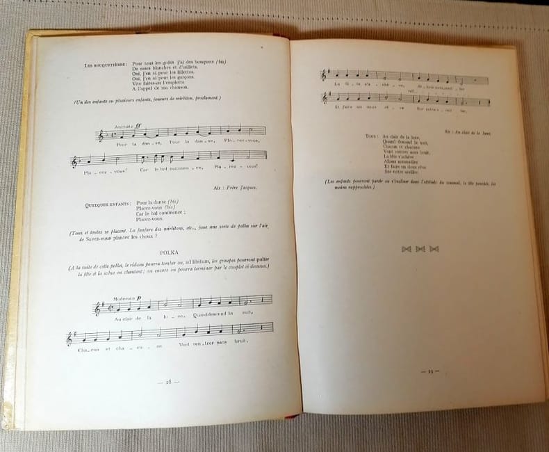 Cartonnage de l'éditeur dos toile, 27X19 cm, 1927, 126 pages, illustrations de Maitrejean, texte et partitions, librairie Fernand Nathan. De petites marques d'usage, bon exemplaire.
