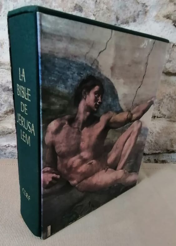 édition de 1955 imprimée en 1972. Illustrations en couleurs de Salvador Dali. Les Introductions ont été rédigées par R. de Vaux, O.P., pour l’Ancien Testament, et par P. Benoit, O. P., pour le Nouveau Testament (sauf les écrits Johanniques, dont les introductions ont été rédigés par M.-E. Boismard, O. P.) Bon état d’occasion