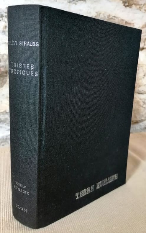 Paris, Librairie Plon, 1955, in-8, [8]-462-[1] pp, Broché, jaquette illustrée de l'éditeur, 63 reproductions photographiques en noir hors texte ; figures dans le texte. Édition originale, avec indication de "6e mille" au dos de la jaquette. Exemplaire du service de presse. Il n'a pas été tiré de grand papier. Sans doute, le livre d'ethnographie le plus célèbre au monde, Tristes tropiques mélange étude scientifique et réflexions philosophique. Ils relatent les voyages et les observations de Lévi-Strauss, notamment ceux concernant le Brésil qui constitue la majorité du livre. Exemplaire tel que paru et non coupé, bien complet de sa jaquette ornée d'un dessin d'une femme Caduveo. Jaquette usée, mais exempte de déchirures. Couverture rigide