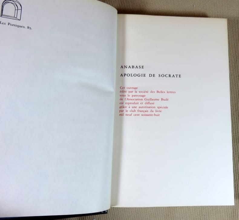 Pour Anabase, traduction et note par Paul Masqueray; Pour Apologie de Socrate. traduction et note par François Ollier. Edité sous le patronage de l'Association Guillaume Budé.