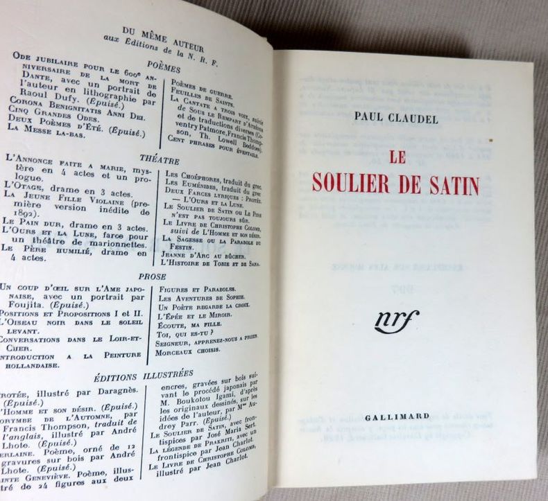 1959 1959. Paul Claudel: Le Soulier de Satin-L'Otage/ Club des Libraires de France 1959 . Paul Claudel: Le Soulier de Satin-L'Otage/ Club des Libraires de France 1959